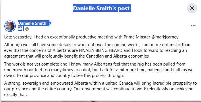 Alberta has long been the engine of Canada’s prosperity, yet we’ve endured repeated betrayals, and rugs pulled from under our feet, as Smith herself acknowledges. The federal government has a history of overreach, from carbon taxes that strangle our industries to policies that erode our autonomy. Now, with whispers of concessions on the horizon, the temptation is real: settle for scraps from Ottawa’s table rather than forging our own path to independence.